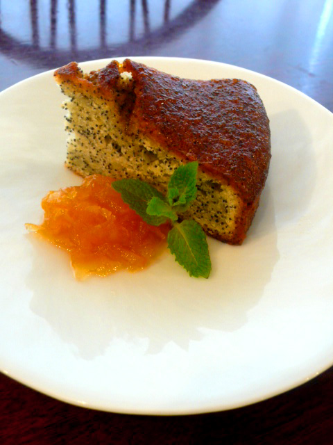 続いてのデザートは、「ポピーシードのケーキ」。ポピーシードとは、スパイスの一種で風味にクセはなく、つぶつぶした食感が口に楽しい。実はカルシウムや鉄分などを多く含むらしいですよ〜。ケーキの表面にはしっとりじんわり、オレンジシロップが染みています。冷やして食べるのが断然美味です〜!店長お手製の甘夏マーマレードジャムを添えて。(ぬ)