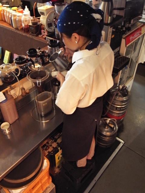 普通にホットコーヒーを淹れるのは大丈夫なんですけど、えぇ、さすがにアイスコーヒーの大やぐらだと小さなコジコ、安定して抽出するには高さがちょっと足りない!ということで、こんな時は以前はまちゃんのためにキッチンからドリンカー、各所に配置された踏み台(通称浜田台)の登場!ということで、一時的になんだかのっぽなコジコがアイスコーヒー抽出中!…って、この角度から写真撮ったのはじめてだな(笑)。(お)