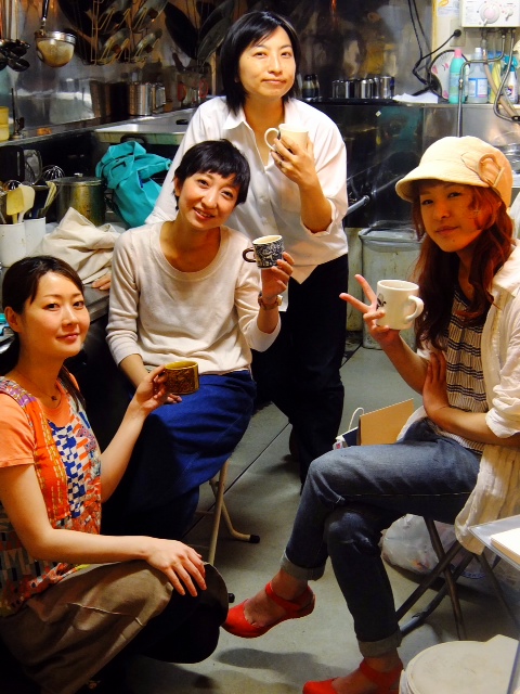 店長ミヤザキとワタクシから、小さな器のセットをプレゼント、たまたま残ってたおなじみのお客さんに遅番スタッフはぬまっちにのだみ、一緒にパチリと記念撮影!おめでとう!(お)