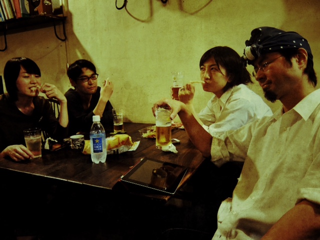さてさて、今月2度目の連休をいただきましたが、えぇ、その前夜は日曜深夜...当店元キッチンスタッフのはまちゃん...元上司と申しますか、えぇ、はまちゃんがフリーの縫い子さんとして参加しております西荻窪のporto ponponeの植木さん、二人揃ってちょいと野暮用でご来店(笑)。せっかくですからと残りものをつまみにわいわい盛り上がる休日前夜でありました!(お)