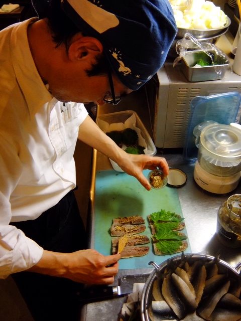 さ〜て、さてさて、GW明けはわりにのんびりが続いております当店ですが、えぇ、そうゆう時ほど写真がアップされるものですよと(苦笑)、えぇ、というわけで、明日のランチのためにせっせといわしに粒マスタードを塗ったら、ちょいとその上に大葉をのせて…そう「いわしのマスタードフライ」の仕込みをせっせとがんばってくれておりました!と、対抗日替わりは「ゆで豚・たまねぎしょうゆ」…金曜ランチ、お見逃しなく!(笑)(お)