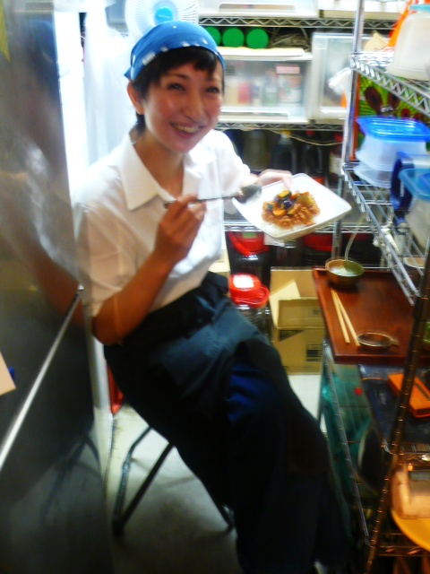 「今日のまかないは何にするんですか?」と聞いたところ「肉団子のスパイストマト煮込み!」と目をきらっとさせて言われました(笑)。が、しかし、肉団子はすぐ売り切れ…!がーん。そんなきめちゃんの為に店長がスペシャルなまかない。ミートソース丼!素揚げした野菜をバランスよく乗せて。あぁあ〜おいしそう!きめちゃんの笑顔も素敵!!よかったね、きめちゃん。今日はありがとうございました!