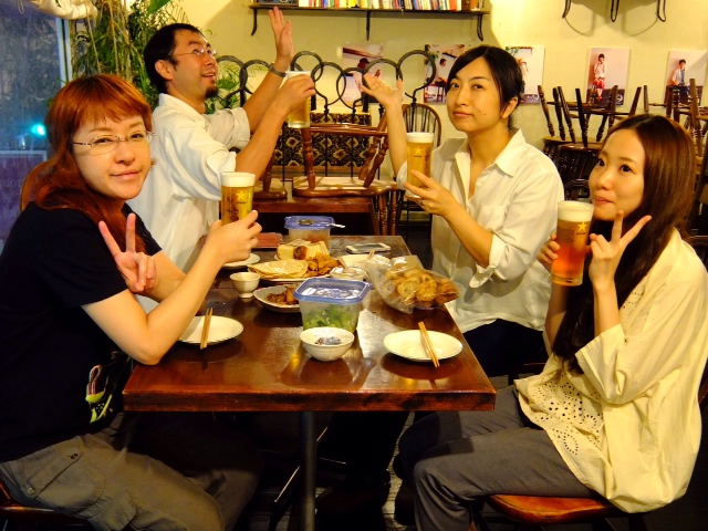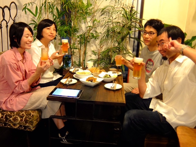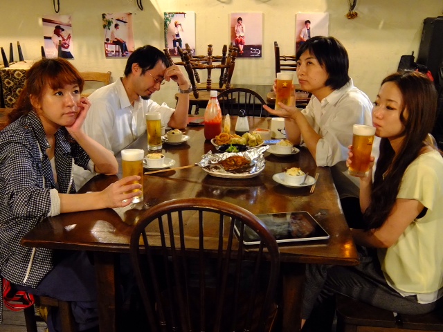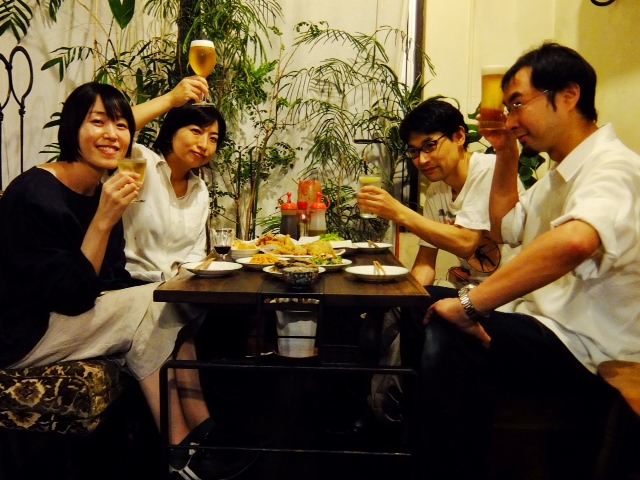 あー、日曜深夜はお疲れさんの乾杯は、先週と全くおんなじ面子だねと(苦笑)、だったらやっぱりマンネリだったソファはやめて、今までにないところで乾杯しようか!そうしよう!と…あー、窓際の席をわざわざふたつくっつけて4人席(笑)…いや、新鮮だね!阿波踊りの後で、カーテンも上がっててまた更に新鮮ですなと…あー、でもやっぱり二度とないかもね、この席は(苦笑)。(お)