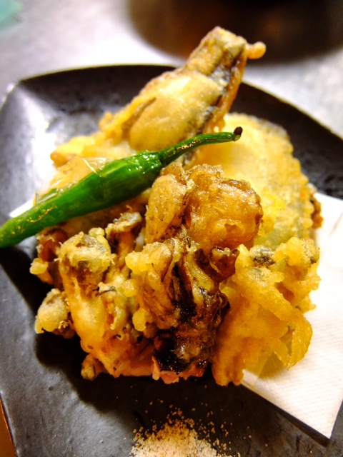 あー、昨日から当店でもメニューインは秋の味覚!さんま!…キッチンスタッフは久保さんがはじめてその捌き方を習い、コツコツ捌いた旬のさんま、まずはきのこをお供にシンプルに天ぷら!…かりっかりは揚げたてあつあつ!旨味の乗ったさんまのおいしさ、山椒塩と天つゆでどうぞ!秋の日本酒「ひやおろし」にもうってつけ!ぜひぜひ〜!(お)
