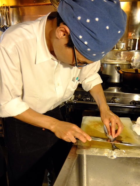 忙しいランチ営業の合間を縫って、キッチンスタッフののだみさんがせっせと仕込んでおりましたのは「れんこんのきんぴら」!シャキシャキとした食感、甘辛タレが絡みついて…あぁ、もう見るからにおいしそう!…あー、ちょっとひとつお味見でもと、つまみぐいの衝動を、どうにか抑えたワタクシです(苦笑)。みなさんは夜メニュー、遠慮なくどうぞ!(笑)(お)