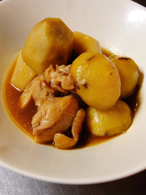 さてさて当店的には秋の味覚ははじめての食材?(宴会なんかでお出ししたことはありますけど)…ほっくり栗!独特の風味に食感…あー、よく拾ってきてたよなー(田舎の子なんで!…笑)と、えぇ、下味つけた鶏肉の旨味、しっとりねっとり里芋のおいしさ!ざっくり炒めて甘辛〜く味付けしましたよ!ちょいと一品、また秋のおいしさお召し上がり!(お)