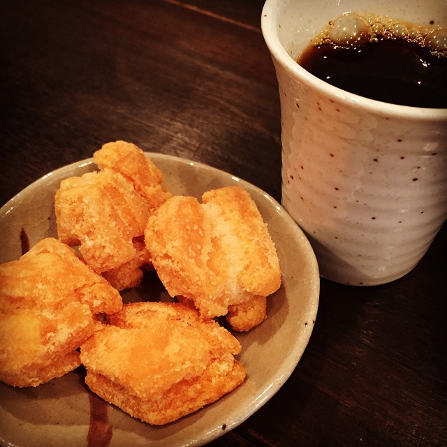 週に一度のまほろばタイム!(笑)ということで、えぇ、今日も一杯コーヒーをいただきつつ、お茶請けはかき餅的なおかき…なにげにコーヒーによく合うよ!(お)