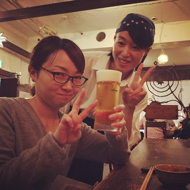 お腹を空かして、元スタッフのはまちゃんがご来店〜!(笑)なにはともあれひとまずビールだい!(笑)(お)
