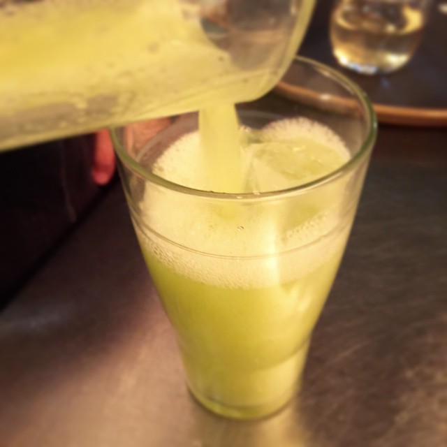 フレッシュなシャインマスカットたっぷり!白ワインといっしょにミキサーでスクイーズ!…いや、初日の今夜は完売御礼…マスカットがある限りは続ける予定ですよ!(笑…でもいつまでだろ?ぶとうの季節)(お)