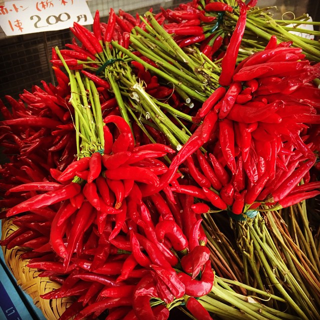 あー、体育の日の三連休…うちの大家さんはヒロヤショップさんの店先には真っ赤な唐辛子!(値札には「赤トン」とありますね)いや、うちで使う予定はないのだけどさ(苦笑)、その赤さに惹かれてつい(笑)。(お)