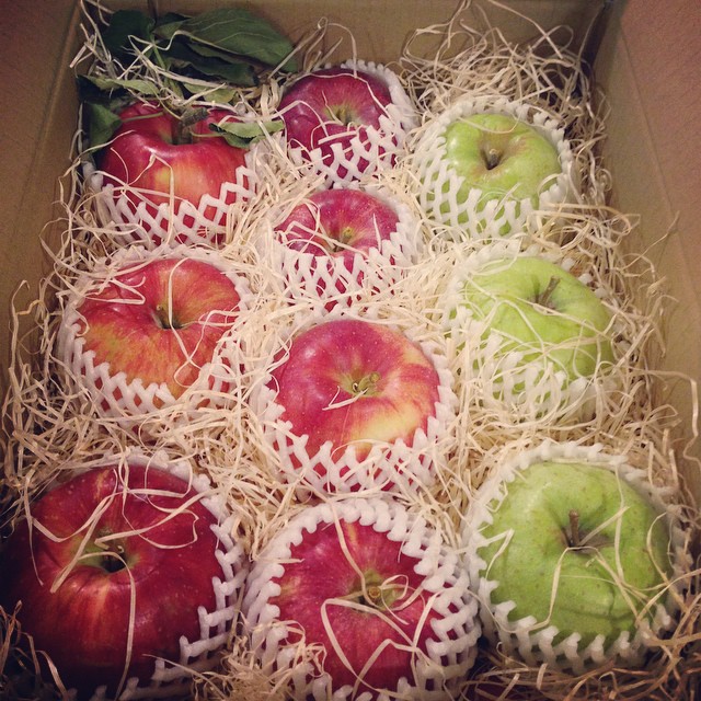 秋めかしい贈り物です。okayanのお父さんより、山口の徳佐りんごが届きました〜ありがとうございます。色とりどりに美味しそう!皆でご馳走になりますね。(ぬ)