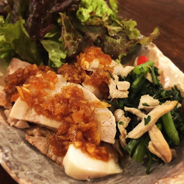 毎度おなじみ、ワタクシokayan賄いシリーズ!本日はランチの日替わりから「ゆで豚・たまねぎしょうゆ」(切れっぱし)と「蒸し鶏と春菊のからしあえ」のちょこもり。いや、ふたつのおいしさ、充実の賄いでした。ごちそうさまです。(お)