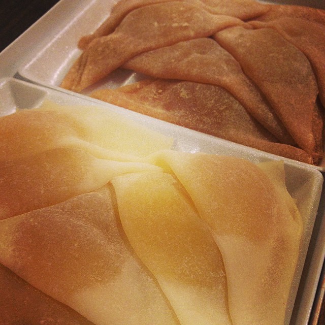 京都に出張するんですよー、というお客様に「生八つ橋食べたーい!」と、おねだりする暴挙に出た店長ミヤザキです。そしてお土産に買ってきてくださいましたよ!生八つ橋!ありがとうございます*(^o^)/*感謝して味わいます〜(麻)