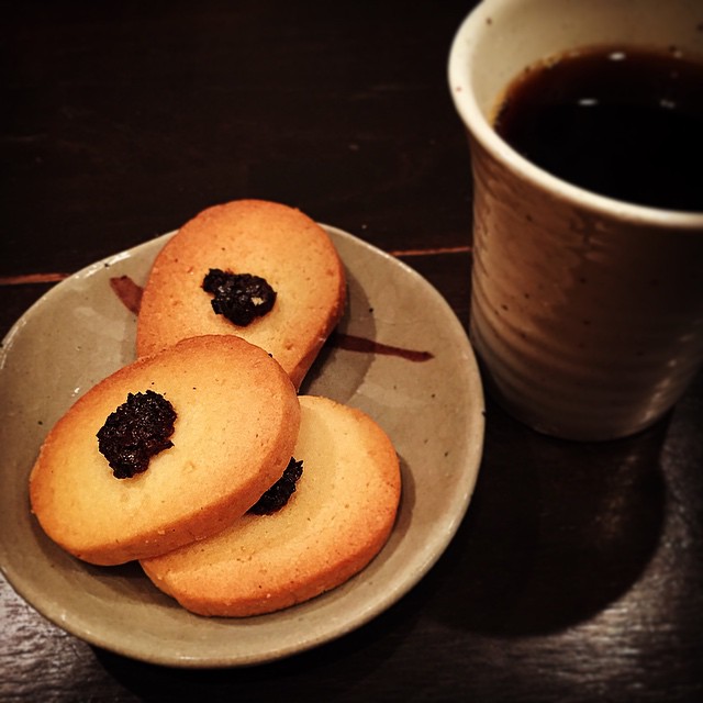 週明け早々、今週のまほろばブレイクは冷たい雨ですなぁと、あー、今日のお茶請けはクッキーをいただいております。手が冷たくてかじかむけれど、少しギターの練習でも。(お)