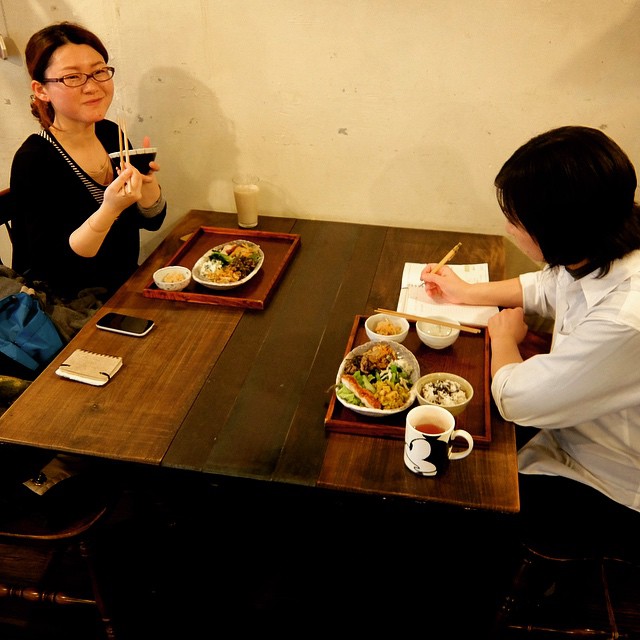 あー、土曜のランチ忙しかったー!!と、ほっとひと息賄いタイム、えぇ、ホールスタッフのウメさんはなんでか店長ミヤザキとサシで勝負!(笑)いや、罰ゲームでも説教でもないですってば!(笑)もちろん仲よくごはん中ですよ。(お)