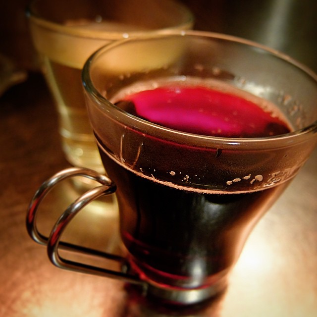 あー、今日は小春日和であったかかったですけど、えぇ、明日からまた冬将軍が来なさるそうで、えぇ、ここはホッとあったか!ホットワインはいかか?…各種自家製シロップのお湯わりもイイネ!(お)