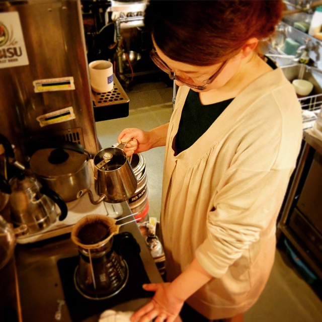 あー、さすがにこのお天気じゃね、のんびりすぎるくらいのんびりだねと、えぇ、ランチも終わって雪の昼下がり、今日もウメさんがコーヒーを淹れてくれるのであります。(お)