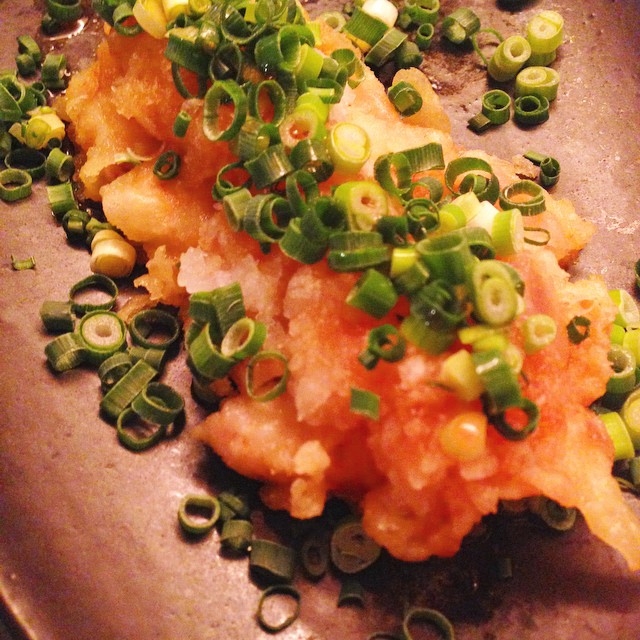 今日のまかないはねぎとん!日替わりメニューに目がない私ですが、たまに無性にねぎとんが食べたくなります。天ぷら粉で揚げた豚肉の上に、大根おろし、ねぎを乗せてポン酢を大胆にかけちゃいます!こうやって食べると、脂身の強いお肉でもサッパリと食べれちゃう。コッテリ×サッパリの組み合わせって、やっぱりいいですねぇ。(コジ)