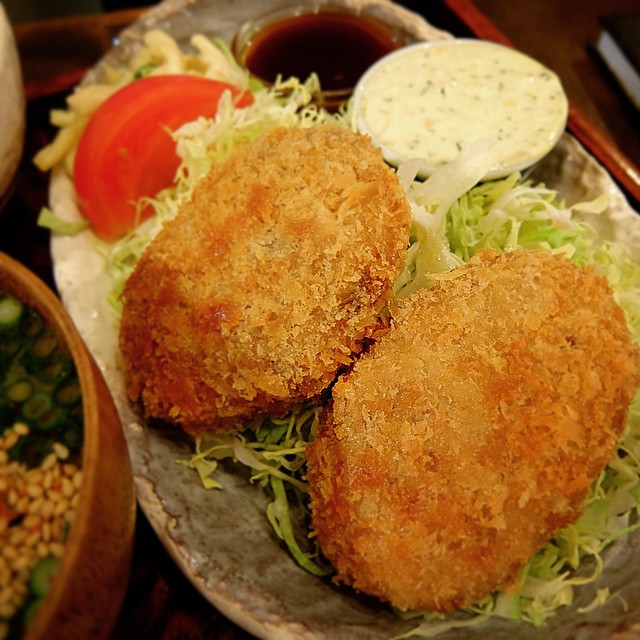 あー、久しぶりに本日ワタクシokayanの賄いは今夜メニューアウトした「男しゃくコロッケ」!…は、とんかつソースにタルタルソース!さらにキャベツの千切りは大盛りと、えぇ、大盤振る舞いでありがとうございます!(おなかいっぱい!)(お)