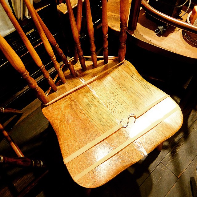 先週日曜日の深夜は…座面が真っ二つに割れてしまった椅子の修理。ま、単純に木工用ボンドで接着しただけなんですけど(笑)、太めのゴムで圧着して、今日はすっかり現役復帰ですよ…って、ま、そうゆう仕事もあるんですよ(笑)。(お)