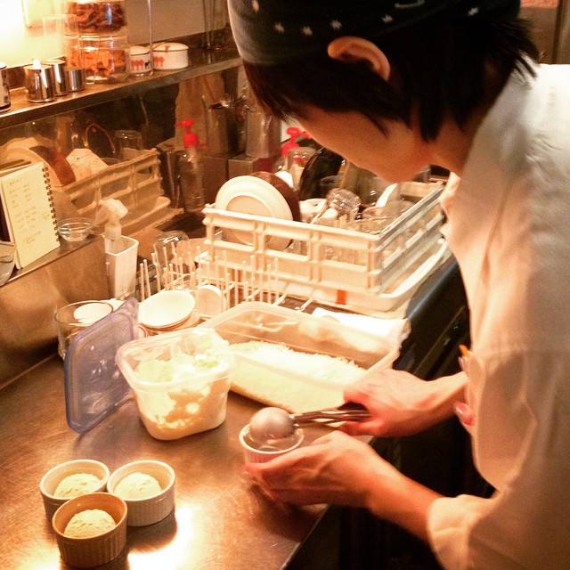 昨日から速報してますアイスクリーム。まかない後クルッ、ポンと沼田さんが手際よく盛り付けてくれました。「なめらかで爽やか〜(。-_-。)」です。なめらかでコクがあるのに生姜でさっぱり。この季節のご飯のあとにぴったりな美味しさでした!(うめ)