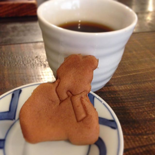 お客様からいただきました。なんの形かわかりますか?太宰治です、考えこんでますね。三鷹ならではのお菓子ですね。社会福祉法人はなゆめさんが作られてるそうです。もちもちして美味しかったです。ありがとうございます。(うめ)