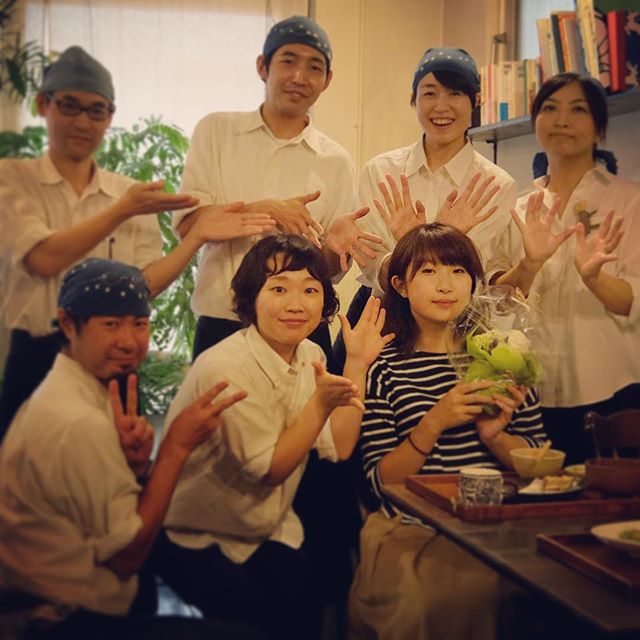 というわけで本日ランチはラストシフトでした!大学生スタッフのおごと!短い間でしたが、力を貸してくれて本当にありがとう。小さなお花をプレゼントして、みんなで写真もパチリ!(お)
