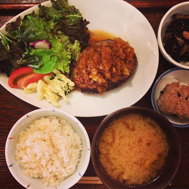 今日のランチはみんな大好き「エビフライ定食」と、さっぱり「ゆで豚玉ねぎしょうゆ定食」でしたが、どちらも完売御礼。日替わりが食べたいです、と声高に主張していた私に店長が「玉ねぎしょうゆ」たっぷりのハンバーグを賄いに作ってくれました!玉ねぎの旨味が、お肉とよく合う!ご馳走様です、食いしん坊バンザイ(笑)(ぬ)
