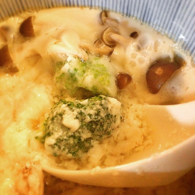 あー、「アイスクリームを作るときに余る白身で一品」は第三弾!(笑)いよいよ本格的に店長ミヤザキか「どんぶり茶碗蒸し」!(笑)いや、黄身がなくとも十分おいしいね!と(笑)…そろそろメニューに茶碗蒸しが登場する?ねぇ、するする???(笑)(お)
