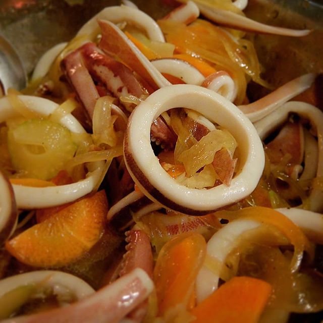 いや、午後は風が出てきましたねと、ちょっと冷たい風ですよと、えぇ、当店午後の仕込みは小さなメニュー「イカのマリネ」!旬のぷりぷりイカとにんじんたまねぎセロリの香味野菜といっしょに、白ワイン仕立てのまろやかな酸味のさっぱりマリネ!(お)