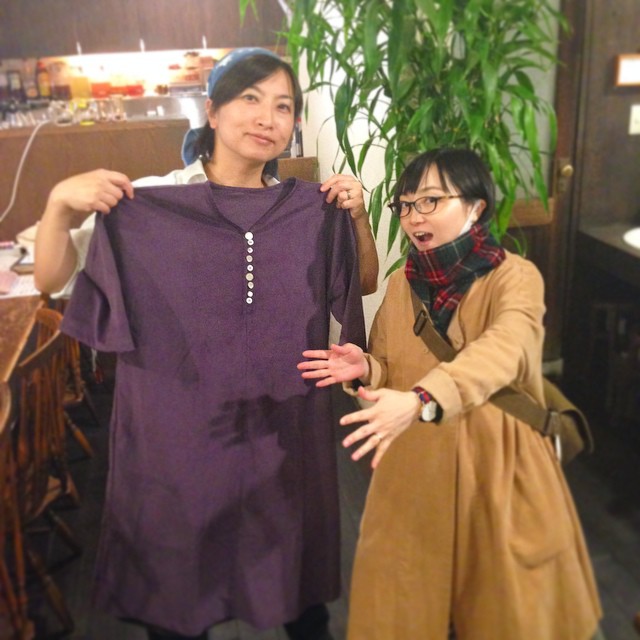 今日は元キッチンスタッフはま子さんが、2ヶ月半遅れの誕生日プレゼントをくれました!手づくりのワンピースです。昔これ作って!とリクエストしておいたものを作ってくれたのです。持つべきものは専属お針子ですね!ありがとう、はま子〜!(麻)