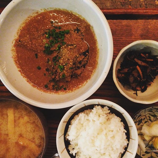 今日のまかないは、サバと茄子のごま味噌煮です。ごまたっぷりの煮汁をスプーンですくって食べていたのですが、最後はついにご飯をお皿の中に…。ちょっとお行儀悪いかしらと思いましたが、やっちゃいました。いやぁ、もう大満足。おかわりしたいくらいです!(な)