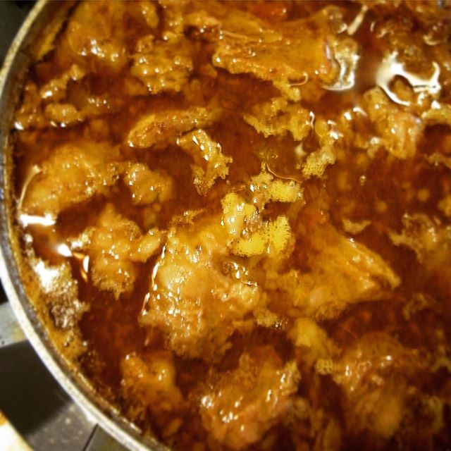 あー、通常の営業や仕込みもしつつ、今週は来週のクリスマスディナーのための下ごしらえをしておりますよと、えぇ、中鍋にことこと煮込まれておりますのはビーフシチュー用のフォンドボー!…みなさんよりも「いい匂い」だけお先にいただいております!(笑)22日、24日はまだご予約イケますよ!ぜひ!(お)