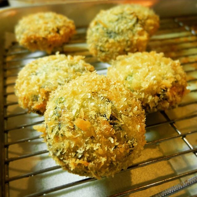 ハイハイ、今夜のおススメは揚げたてあつあつ!「鮭とほうれんそうのコロッケ」!あぁ、もう説明なんていらないね!いいからビール持ってきて!(笑)(お)