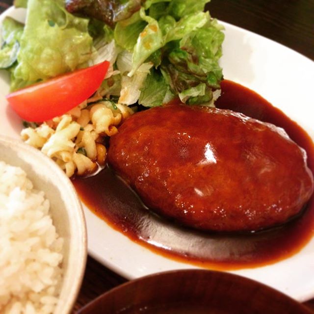 今日のまかないは定番「ハンバーグ定食」です。ひと仕事働いたあとのハンバーグはエネルギーがじわじわ補給されるようです。そして付け合せ野菜にも勢いがありますね、冷たい水を吸わせてシャキッとさせてからお出ししてるのでみずみずしくて柔らかいです。バランスのとれた定食だとおもいます。(うめ)