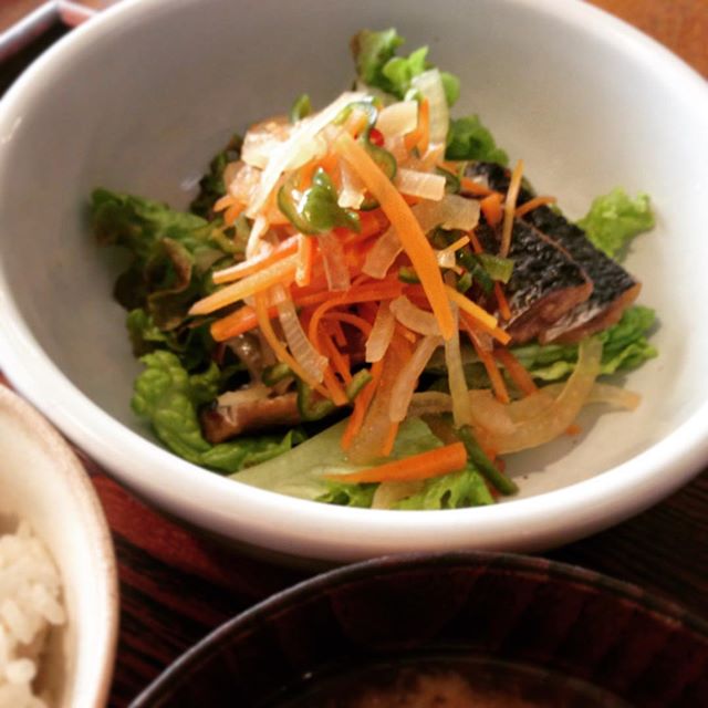 今日はお肉ではありません。「いわしの南蛮漬定食」です。春の体調は少々不安定なものなのか珍しく食欲が控えめだったのですが、いざ南蛮漬食べ始めると不振はどこへやら。さっぱりしてますが脂がのっていて美味しかったです。(うめ)