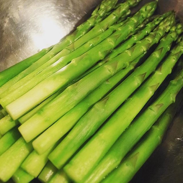 そして連日人気の「グリーンアスパラのミモザサラダ」!今日もアスパラの下ごしらえオッケーです!今夜はお席も空いてますよ!金曜の夜(苦笑)(お)