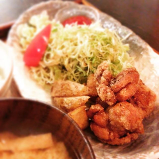 今日のランチはたくさんの方のご来店ありがとうございました。日替わりが売り切れ、ハンバーグが売り切れ、、ということで「今日のまかないは鶏のから揚げでいい?」と聞かれましたが、喜んで!!のメニューです。隠し味のほんのりカレー味がご飯がすすみますね。ポテトフライの塩加減もいい塩梅でした。ごちそうさまです。(うめ)
