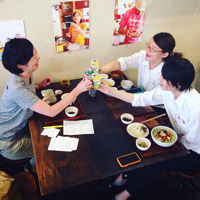 okayanと店長の旅のおみやげ、梨サイダーといちごサイダーで乾杯!忙しいランチのあとにシュワシュワサイダーたまりません!優しい味でした!(うめ)