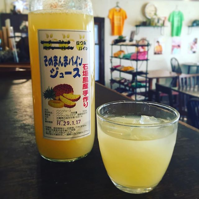 沖縄帰りのお客様に、100%なつみパインジュースをいただきました!砂糖も水も加えないパインだけの味!ありがたくいただきましす!(麻)