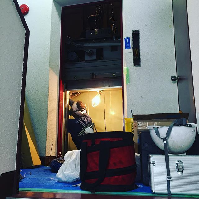 と、本日から実施中のビルエレベーターリフレッシュ工事もすでにせっせと進行中!がんばって!(お)