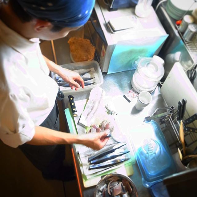そしてやっぱりすっかりさんまの季節!今夜もおススメ!「さんまのたづな揚げ」!こちらも下ごしらえ中ですよ!(お)