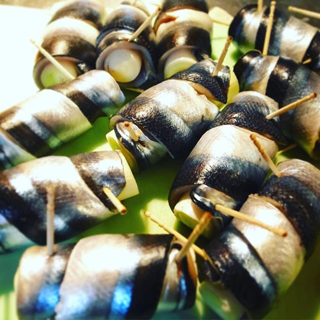 あー、さっきナベさんが用意してくれてた新さんまは店長ミヤザキが長ねぎにくるりと巻いて爪楊枝…もちろん「たづな揚げ」になるのですよ!おいしいよ!(お)
