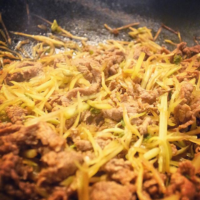 午後ナベさんがざくざく中華鍋を煽って作ってたのは「山うどと牛肉の炒り煮」!いや、なんだかんだ牛肉の炒り煮シリーズの中では一番おいしいよね!山うどのさわやかな香りがたまりません!ごはんにお酒にぜひ!(お)