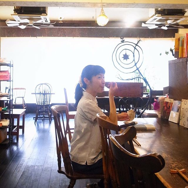 あー、それにしても暑いですねとホールスタッフの南ちゃん、今日は仕事上がりに自腹でひんやり当店手作りアイスは「バナナカルダモンアイスクリーム」をお召し上がりです!いや、実に夏らしい絵ですな!(お)