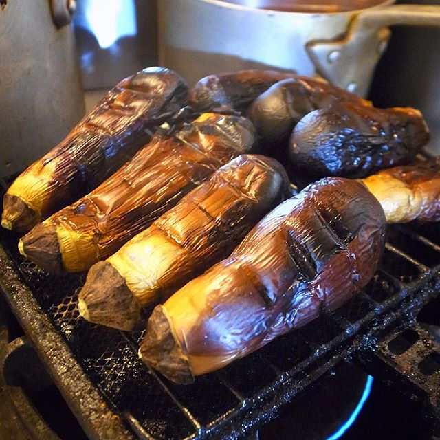 あー、山の日ですね、山ですよと(意味なし)、当店的には茄子がちりちり焼けてます!(笑)さっくり皮をむいて「冷し焼き茄子」!夜もご来店どうぞ〜!(お)
