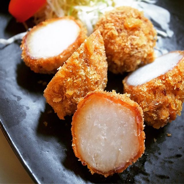 からりと揚げたてフライ!は「里芋の生ハム巻きフライ」!…いや、そのまんまのネーミングですけど、えぇ、里芋のしっとりやさしいおいしさ、生ハムの旨味と塩味…まずはそのままあつあつを、お好みでちらりとウスターソースもまたよろこばしからずや!(笑)ぜひぜひ〜!(お)