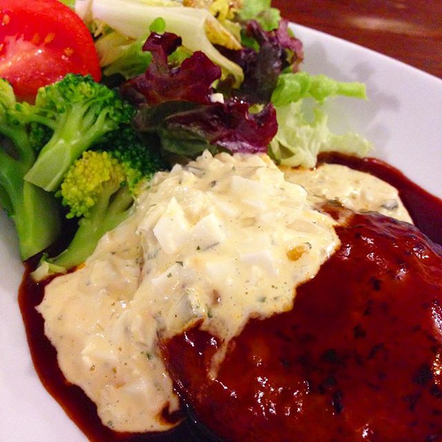 今日のまかないは「ハンバーグタルタルソース定食」です。昨日、夜シフトであがるときにレバーペーストを買って帰りました。娘がとても気に入って…家で作れないなら定期的に買ってきてと言うくらい。また、買って帰ろうと思います。(い)