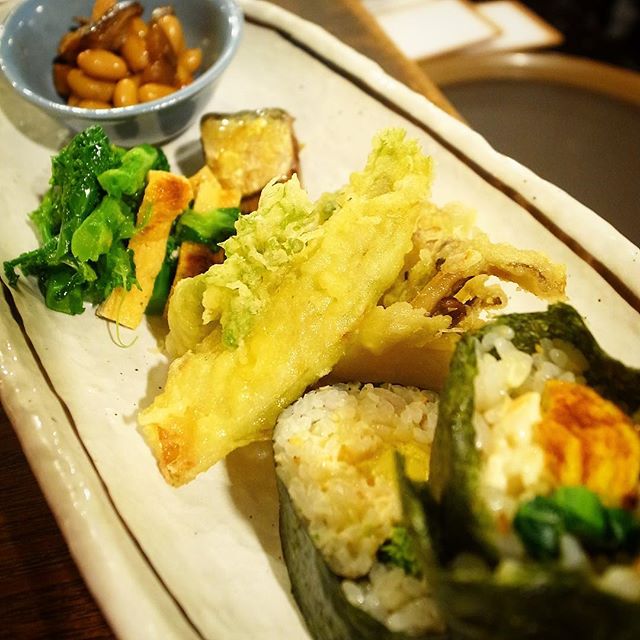 節分ですよ!と今夜初登場は「恵方巻ちょこもり」!当店オリジナル春の恵方巻(ハーフ)に節分といえば豆!の五目豆に鬼避けはいわしの山椒煮、春のおいしさは菜の花のからしあえと山菜ときのこの天ぷら!…今夜限りよ!よろしくね!(笑)(お)