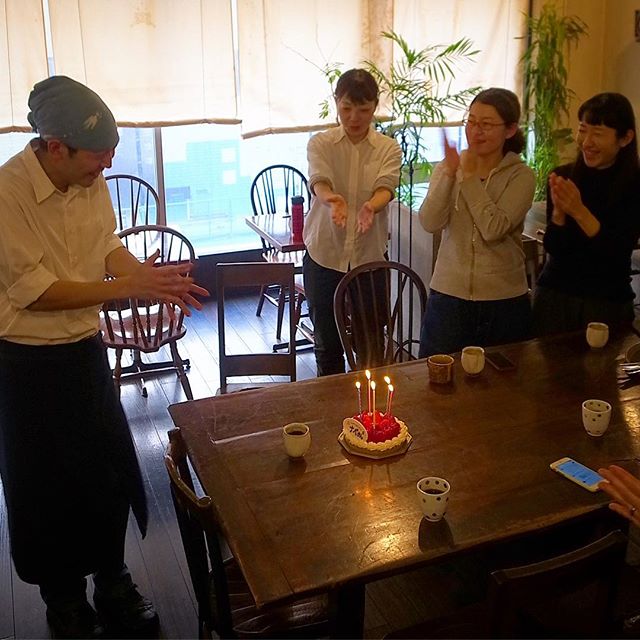 当店お昼のホームページ更新でナベさんのお誕生日を知ったささぽんがわざわざすてきなケーキを買って来てくれました!って、そんな誕生日、大人になってからは特にほとんどないよなぁと、うらやましいねー、ナベさん、ヨカッタねぇ(笑)(お)